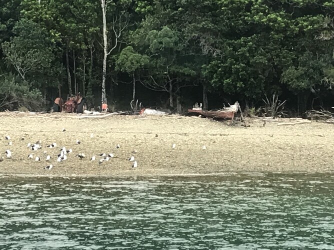 We took a slow cruise to Tennyson Inlet via Waihinau Bay and Horseshoe Bay (see the photo of the old abandoned tractor, skeleton of an old wooden boat and houses with not too many signs of life). We cruised out of Waihinau Bay past a large salmon farm, the first we had encountered, it made a change from the many mussel farms we were passing every day. Whilst I love mussels, I was surprised by just how many farms there were along the shoreline in the most beautiful bays. This is a massive industry here but definitely wouldn’t like to see anymore farms go in! We continued to Horseshoe Bay where we tried for more Gurnard, without success. It seems you don’t catch Gurnard, they catch themselves when they are good and ready! Forget about trying to jag them as they don’t ‘hit’ the bait like a snapper would. We were using soft bait on light gear and having lots of fun as they were nibbling all the time, chasing the bait up. This seemed the only way to catch them, but there were no rules. After failing to catch anything again we headed in to Penzance Bay where we anchored for yet another windy night.