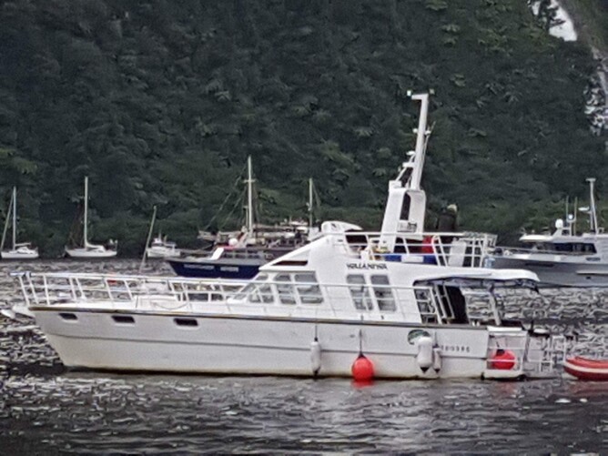 The ‘Mother Ship’ heading out of Deep Cove with its bum down, loaded to the max for their excursion in Doubtful Sound