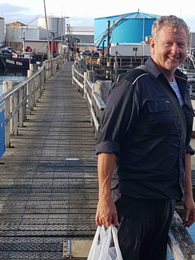 We were now about an hour out so I got on the radio to Bluff Harbour but after multiple attempts I received no reply. Thankfully Maritime radio heard me calling up and responded asking me to try one more time and if they heard no response they would phone them on my behalf and radio back. That was exactly what happened, Maritime radio confirmed we had permission to roll on in to port. The entrance to Bluff was sheltered from the winds that particular day or I was going to travel further east and enter from the eastern channel to avoid turning beam on to the sea. We rolled in without incident and were met by Meri who drove down to direct us to the jetty location. She asked for our ropes and assisted in tying the boat off. We could see that she was an experienced deck hand|skipper. Apparently her and her first husband were fishing these parts for many years which is where Meri first developed an interest in providing this radio service to the Fishermen of the Southern region.