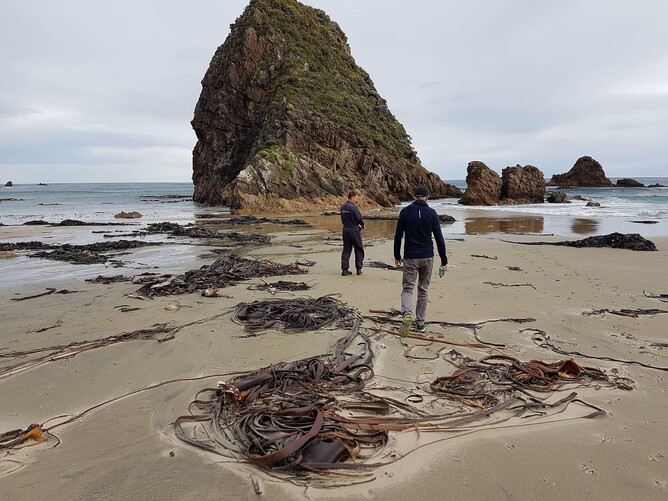 Zane and I taking a wander - notes the massive sea kelp. Zane proceeded to carve a cricket size ball from a hunky section. I threw it some distance to see it bounce just like a ball. It was a very firm rubbery material with considerable mass, which is why Robin and I spend so much time avoiding it when travelling around the Islands, we didn’t fancy untangling this from the propellers!.
