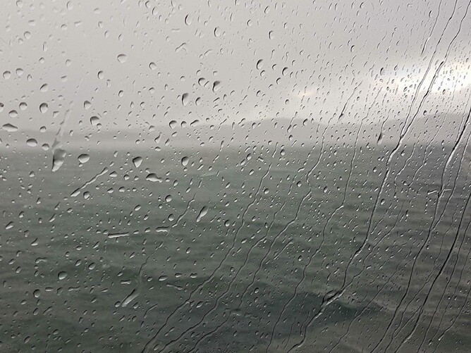 We had a terrible night last night - the wind was up around 35knots at midnight and didn’t let up all night and we were in the wrong spot! The sea was coming in on our port beam side and the wind was right on the nose. This means lots of noise (hull slap) and rolling like hell from the short sea on our beam. As the anchor sensor is yet to be fitted I wasn’t going to relocate in the storm in case I had a complication with the anchor so we just had to ride it out. We awoke to rain, hail and sleet and it didn’t look like stopping all day.