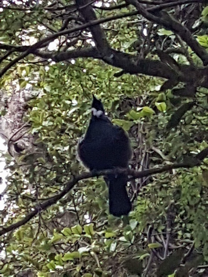 Very large male Tui singing his heart out! They make the most beautiful sound. The bush here was full of them.