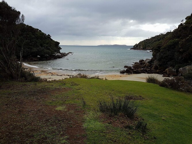 Ackers Bay - where the rocks would most likely have been carried to build his stone house.