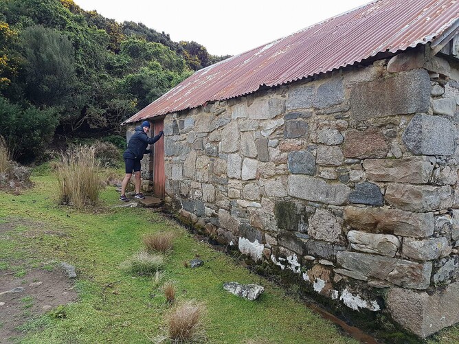 We arrived at the beach and pulled the dinghy up to the high tide mark, secured it to a post then dried our feet and put on our trainers. We wanted to see the oldest stone house on the Island, built in 1836 by Lewis Acker, who was an American Whaler. we also wanted to visit the lighthouse at the point further to the east. The road led to the track, the road was metalled and pot holed but the track was to the usual high standard, so we took our bikes as far as we could go, which was right to the Stone House. He built this himself, he married a local Maori woman, Meri and they had 9 children together that they raised in the house. The bunk beds he built inside were right to the ceiling and 5 tiers high! He was forced to leave when the Island was bought by the Crown thus forcing him to leave the Island after he lost his land. Sad really, he ended up living near Invercargill. In the meantime Captain James Harrold and his wife Agnes moved into the bay just above the stone house and built a house and a shop, turning the stone house into a smithy (blacksmith’s workshop) and later, a Storeroom, brewery and a boat building workshop. Captain Harrold continued Acker’s tradition of boat-building in the Bay.