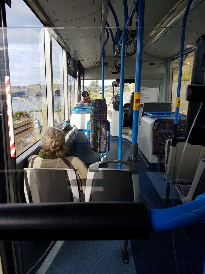 Like most buses in New Zealand immediately after peak hours - very empty! Trying to make up for all the fuel we had been burning in the boat.