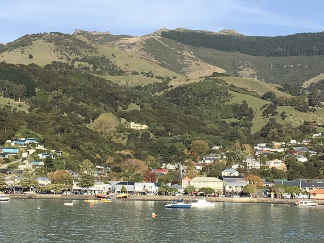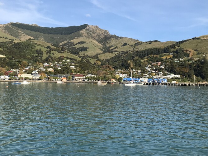 We left Fishermans wharf Careys Bay at 6:00am, in the dark planning to arrive Akaroa Harbour 3:30pm in the afternoon. We knew we had a great weather window so we want to exploit it. After doing the usual radio checks for outbound ship movements we proceeded to run out to the entrance at about 8 knots - it is a long way, even from Careys Bay! It took us about 45 minutes. I radioed Otago Maritime radio and logged my trip report and vacated to the North at about 17 knots, later lifting our speed to 19 knots for the remainder of the trip. We had a following sea and zero wind right up until the last 3 - 4 Nm to the entrance where we met 25knots and a small amount of sea running. Soon we were in the Harbour and cruising towards our destination. It was 3:30pm as we arrived in French Bay; what a cool place! We.got the boat anchored as quickly as possible so we could maximise our time ashore. As we anchored I noticed a Cat we had seen in Stewart Island, Careys Bay and now Akaroa? I said to Robin, ‘we need to go visit them and introduce ourselves as it seems that they are following us, or is it the other way around”? On leaving H3 we could see that their tender was not with the Cat so we went ashore and wandered the streets getting the feel for the ambiance of this very unique NZ town. The Feeling that something was different struck you right from the moment we stepped ashore. The French street names, the quaint little shops, this is a place I want to come back to! We stopped for a coffee and found friendly people serving us and a very slick little operation. Mind you, cruise ships come in here so you need to be on the top of your game to handle big numbers in a short time frame. Also there were tourist type boats bringing large groups back to shore to swamp the shops. The Fish and Chip shop here is renowned and we could tell by looking at the patronage! We passed the war memorial where white crosses were placed in front for Anzac Day where all the names of those lost were noted, French names were there too. There were a large number of casualties for such a small community, it must have had a huge impact on the community back then.